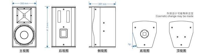 箱体采用网布内饰,表面采用进口芬兰桦木夹板,原木色光面修色处理及金属背板,使音箱更易于与建筑环境和娱乐氛围相溶。